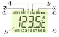 | ■機能 ●温度測定チャンネル ●防水 ●バックライト ●温度データセーブ ●抗菌 ●ホールド ●温度(最高/最低)アラーム ●温度(最高/最低)メモリ ■表示画面