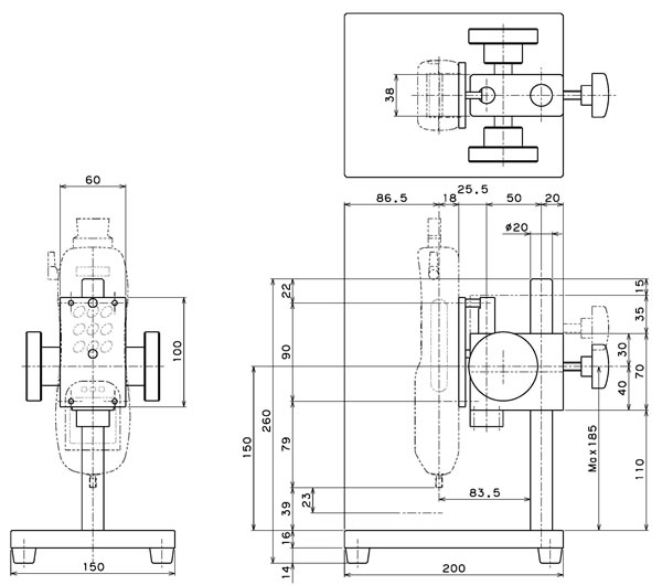 ●軽荷重の圧縮試験用手動スタンド。 ●側面のノブを回転させることによりプッシュプルゲージが上下する。 ●軽量で持ち運びがしやすい。 ●移動量の少ないスイッチ 微小ワーク向き。 ※プッシュプルゲージ(フォースゲージ)は別売りです。 |