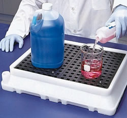 | ●研究室、実験室などのカウンターで、小さな容器を置くのに便利なトレーです。 ●容器からの液体漏れ、垂れ落ち、容器のひび割れが発見されたらカウンタートレーをご利用ください。 ●トレーはドレンつきで、内部に溜まった液体を容易に排出することができます。 ●耐薬品性にすぐれたポリエチレン製。 ●半透明のトレーは、内部の液体を容易に確認することができます。