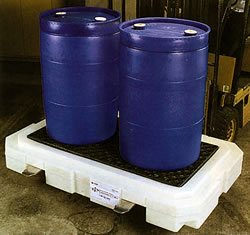 ●丈夫なパレットは、ドラム缶の保管に最適です。 ●ドラム缶、一斗缶などを乗せ、万が一の漏洩事故の際に液体を保持し、拡散を防ぎます。 ●床や地下に液体が浸透することを防ぎます。 ●ドラム缶を乗せたまま、フォークリフトで移動が可能です。 ●半透明の白色のパレットは、サンプ内の液体量を簡単にチェックすることができます。 ●滑り止め防止の格子は取り外しが可能です。 ●サンプ内部にたまった液体を容易に排出することができるドレンつきと、ドレンなしがあります。 |