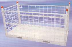 倉庫での入出庫変化に即応 カーゴを棚として使えます 5段積設計 ●組立段積みしたまま着脱自在の前・背面ネットの活用で品出し簡単 ●四方ネット付なので落下防止、荷崩れ防止効果を発揮します。 ●スペースを2倍に使えます。 *固定棚との比較(カーゴW2×D1×H1m)5段積みの場合 (例)固定棚 W2.3×D1×H1M×2段=4.6m3 カーゴ 2m3×5段=10m3 |