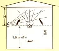 | ■取付灯数 N=0.05V/HF N:灯数 H:灯具と天井との距離(m) V:部屋の容積(m3) F:器具の係数