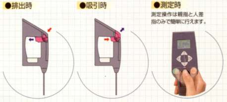 | ■特長 ●サンプリング量及び吸引速度が片手で簡単に調整できる。 ●左右どちらの手でも操作でき、操作中でも測定セルの状態が確認できる ●通常のハンドリングで疲れを感じさせない重量。 ●粘度が約2000mPa・sの試料までサンプリングが可能。 ●測定値の表示は、密度、温度補償密度、比重、温度補償比重、Brix%、アルコール濃度、硫酸濃度、API度、Baume度、Plato度、Proof度などを表示 ●グラフィックLCDを用いて、測定値の他に温度(゚C、゚F)、試料No.、振動安定度の自動診断、データの自動保存、データの自動出力、データの削除、電池の消耗度合などを表示。 ●電池寿命が従来機の約2倍となり、稼動時間が非常に長くなりました。 ■操作性 親指と人差指の操作で、吸引、排出が可能です。どちらの操作の場合でも指の力を抜いた時点でレバーもストップする構造を採用しています。また、測定操作も親指で操作出来る位置にあるので、測定作業効率が格段に上がります。 ![]() ![]() ●赤外線ポートを標準装備しており、データのやり取りが簡単です。 (IrDA Ver.1.2規格に準拠) ![]() ●グラフィックLCDには、さまざまな情報が見易く表示されるので、情報の把握が容易です。 ![]() ■用途 ●原油、燃料油、潤滑油などの密度の測定。 ●化学製品のJIS K 0061には、20℃密度や20/20℃比重などの測定法として振動法が規定されています。 ●牛乳、清涼飲料、果実飲料など各種飲料の密度やBrixや成分濃度の測定。 ●ビール、ウィスキー、ワイン、焼酎、日本酒などのアルコール度やエキス類の濃度の測定。 ●食品減量の品質管理にBrixや成分濃度の測定。 ●植物油や動物油など油脂類の密度や比重の測定。 ●薬品関係では日本薬局方13局に採用されています。 ●電子部品のエッチング液や酸洗い液などの濃度管理。 ●フラックスの濃度やめっき液の濃度管理。 ■仕様