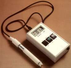 | ■特長 ●電極部をプラスチック化・固体化(ゲル電極)することで衝撃に強く、軽量化・高耐久性を実現しました。 ●フラッシュ回路機構で、短時間で測定開始、そして電極の残留物を簡単に除去できます。 ●樹脂製プローブに電解ゲルを封入し、扱いやすく、耐久製に優れています。従来のガラス製に電解水を封入したものは、こわれやすく液もれ、電極が乾燥しやすく、測定が不安定で取扱・保管に神経を使いました。 ●測定対象の液体を、測定時に攪拌する必要がなく、小さな対象物や野菜、皮膚なども測定できます。 ●006P乾電池1個で測定場所を選びません。操作は3つのスイッチのみで、だれでも簡単に測定できます。 |