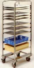 | ●オールステンレス製(SUS304) ビス1本に至るまで、最高級ステンレスSUS304(18-8)を使用しており、塗装片や錆など、異物の混入する心配がありません。耐蝕性に優れているので洗浄剤等、薬品の利用が可能です。 また冷蔵庫・冷凍庫ほはじめ、様々な環境下での使用が可能です。 ●便利な自在棚 棚間隔を25㎜ごとに取付可能ですので商品や容器に合わせ、棚の間隔調整が簡単にできます。 また棚を追加していただく事により、最大で29段(50㎜間隔)での利用が可能です。 ●軽量・重量の2タイプ 荷重に合わせ軽量タイプ(耐荷重150kg)と重量タイプ(耐荷重400kg)の2タイプを規格化。 キャスターなど荷重に見合った部材を使用することで安価でかつ安全にご使用いただけます。 ■バリエーション例