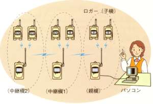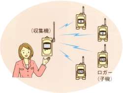 | ■特長 ●無線の通信距離は約400m(見通しのよい直線距離) ●記録中でもデータ収集が可能 ●記録データ数は最大32000データ(1ch測定時) 記録間隔は1秒~60分の15段階から選択、1分間隔で記録すると、約22日間のデータ収集が可能です。 ●簡易防水構造(IP54) ●電池とACアダプタの2電源で長時間記録に対応 ●アラーム出力機能(オープンコレクタ出力)を標準装備 ●電池消耗時、電池交換時のデータ消失がない不揮発性メモリに測定データを記録 ●WPHI3913コミュニケーションベースで測定データの収集・中継通信・パソコンへの転送が可能。 ●直流電圧1chの測定ができます。 DC±50mV/±500mV/±5V/±50Vの4レンジ構成。各種センサの電圧出力、32000データを記録できます。 ■パソコン接続で最大4段の中継通信、ロガー128台まで制御 ●パソコンなしで使う場合 PCからWPHI3913(データ収集機として設定)に子機(WPHI3671)の情報を登録しておくと、WPHI3913単独で子機の記録データ(最大32ch分)を無線で収集できます。 *無線の中継機能は使用できません。 ![]() ●パソコンと接続して使う場合 PCとWPHI3913(親機として設定)を接続し、パソコンからの制御で子機(WPHI3671)の記録データを無線で収集WPHI3913(中継機として設定)を追加すると通信距離が伸び、より大規模なシステムを構成できます。 ![]() ■仕様