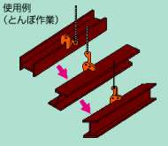 (注意) ●このクランプは簡易型の縦つり専用クランプですのでロック装置が付いていません。特にインチングや衝撃に対して外れやすい傾向にあります。取り扱いには十分に注意して作業を行ってください。 ●一旦無負荷になったつり荷のつり上げは危険です。取り付けをし直してからつり上げを行ってください。 形鋼つり専用クランプ(とんぼ作業可能)/品番 WPAST-05/1 ![]() WPAST-1 ●H型鋼及びI型鋼の移動、反転、積み降し、ビームや構造物のつり上げ積み重ね等に最適です。 ●このクランプは簡易型ですので、取り扱いは、十分に気をつけて作業を行って下さい。 ●衝撃の強いとんぼ(反転)作業も可能です。 ![]()