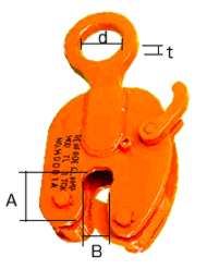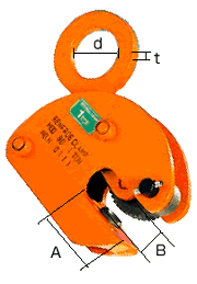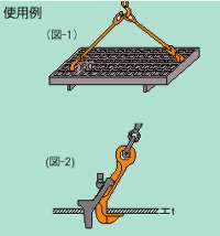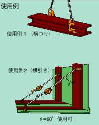 (注意) ●必ず2台1組以上で使用して下さい。 ●カム・ジョーが”B”タイプの場合は、通常のカム・ジョーよりも歯の摩耗が早いので、必ず始業点検の際に摩耗の状態を確認してから使用して下さい。 ●塗装や特殊処理の施されたつり荷には、必ず”S”タイプのカム・ジョーを使用して下さい。 ●取っ手での縦つりはできません。 ●シートバイルの引き抜きには使用できません。 ●掛け幅角度・つり角度は厳守してください。 横つり専用クランプ(安全ロック付)/品番 WPABAシリーズ ![]() WPABA-1 ●平板ばかりでなく、形鋼材等のつり上げ用として用途が豊富です。 ●とんぼ作業可能。 ![]()