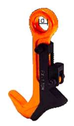 (注意) ●横つり、縦つり作業は2台1組で行ってください。 ●I型鋼等のスロープのついたつり荷は必ず重心つりをしてください。重心から外して傾けたつり方をするとクランプが外れる危険があります。 ●締め付けトルクは、180kgf-c以上で締めてください。(15cmのハンドル長さで12kgf以上の力で締めて下さい。) 覆工板つり専用フック(外れ止め装置付き)/品番 WPFX-1 ![]() WPFX-1 ●2台1組以上で使用して下さい。 ●フック背面に外れ止め装置を設け、しかもラチェット機構によりストッパーが任意の位置で固定されます。 ●軽量小型で、しかも容量が大きく、ハッカーとしても使用出来ます。 ![]()