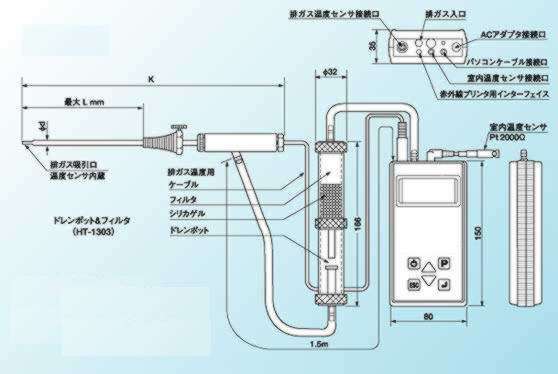 O2、CO温度の3項目計測+他6項目演算。 WPHT-1300Nはボイラや工業炉の燃焼排ガスの成分を計測するために開発された燃焼排ガス分析計です。家庭用から工業用のボイラの排ガス分析に使用出来るよう設計されていますが、ボイラだけではなく液体燃料、気体燃料、固体燃料を燃焼する排ガス分析には、ほとんどの用途で使用出来ます。 計測項目は、酸素濃度(O2)、一酸化炭素濃度(CO)、燃焼排ガス温度、室内空気温度です。また演算項目は、二酸化炭素濃度(CO2)、燃焼効率、排ガス損失、燃焼空気比等が表示できます。また本体には、パソコン用インターフェイス、赤外線プリンタ用インターフェイスが標準装備されています。省エネルギー管理計器、環境管理計器としてご使用下さい。 |