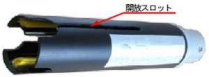 回転式専用の交換器です 最大57Wまで交換可能な長さです 左写真は装着断面の例ですが、黄色プラグが回転を伝える役割をします 蛍光灯の先端にこの交換器をのぞかせていきますが、当たった感触があればどちらかに回転させると溝と一致しスムーズに挿入できます |