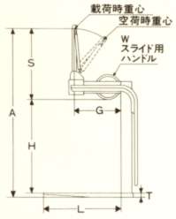 パレットの幅がまちまちの場合に 主にパレット積みの吊り荷の搬送用に使用します。 定格荷重は 0.5、1、1.5、2dの4種類。また、各定格荷重ごとに有効寸法の高いタイプと低いタイプを設定しております。 空荷の時にもスプリング機構によって、フォークは常に水平が保たれ、パレットへの差し込みが容易にでき、あつかいが簡単です。 |