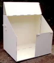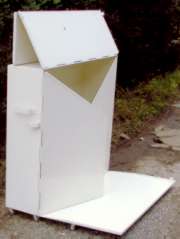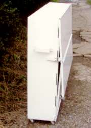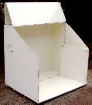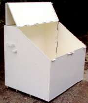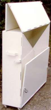 ●生ゴミ袋を道路に放置すると、カラスやネコ等がゴミ袋を破り、路上に生ゴミが散乱して問題化しています。道路の美観を損ねるばかりか、不衛生で、清掃の労力もあなどれません。これらを解決するため(折り畳み式ゴミ箱)が開発されました。 ●生ゴミを入れたゴミ袋を、一時的に収容し道路脇に置いても、大きなスペースを取らず、また使用時以外は、コンパクトに折り畳めます。 ●折り畳むことによって、設置スペースが少なく道路端でも交通の妨害になりません。キャスターにより移動も容易です。また、構造が簡単ですから誰でも組立てられます。 ●屋根板に広告を掲示できます。 ●重さ38kg (寸法及び仕様は、予告無く変更する場合があります。) |