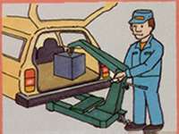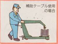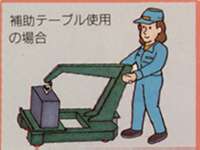 | ■特長 ●重量物をフックで床面から直接吊揚げ、1人で楽々運搬出来ます。 ●アームリフト型式なので重量物のライトバンやワゴン車等への積込み、降ろしが簡単に出来ます。(ライトバン等の後ろのドアも邪魔になりません) ●小型リフトなので小回りがききます。工場内、路上、狭い所でも自由自在に動きます。 ●油圧式のため吊揚げ、下降操作が楽に出来ます。 ●安全性、耐久性抜群の構造。 ●補助テーブル(鋼板)の使用による安全運搬、アームへの負荷軽減。 ![]() ■仕様