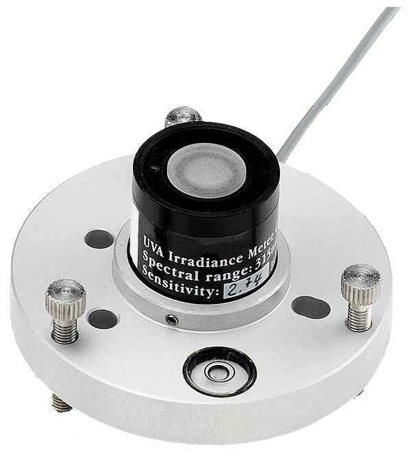 ■代表スペクトル応答(※) ![]() ■寸法図 プローブの取り付け方 適切なプローブの設置場所を決め、プローブと電圧計(プローブ出力信号の受信機器)の接続を行います。電圧計は測定範囲に適ったスケールを備えていなければなりません。接続ダイアグラムはプローブに添付される取扱説明書に記載されています。気象、農業ステーションあるいは種苗栽培システムなどでは、プローブの基準面を地面と水平になるようプローブを設置しなければなりません。このような場合は、気泡水準器付の水準調整用ベース(オプション)のご利用をお勧めします。 ![]() ![]() ※気泡水準器付調整ベース(オプション) ※セットされているセンサーはWPLP-UVA-01です。 |