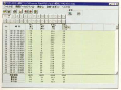 無線温湿度ロガーは、温度と湿度を測定し測定データをワイヤレスで伝送する送信器と、そのデータを受信し最大32000データまでメモリーしておくことができる受信器で構成されたデータロガーです。 受信器1台で送信器・中継器を最大30台まで管理でき、各所に点在している送信器のデータをメモリーしパソコンで解析することができます。 |
