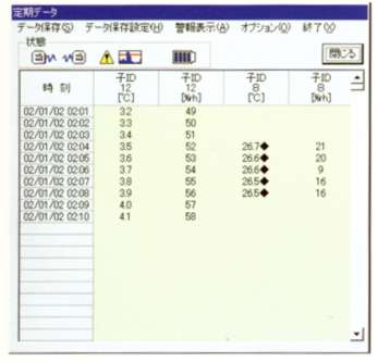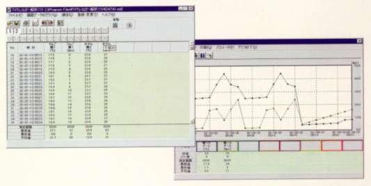 ■外形寸法 ![]() ■解析ソフト ●一覧表示画面 ![]() ●トレンドグラフ画面 ![]() ●定期データ画面 ![]() ●機器仕様