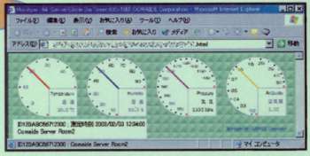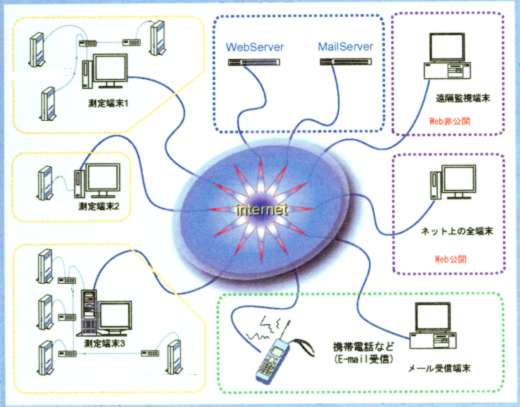| ■特長 ●1台のPCに複数台接続し、マネジメント機能で各ユニットを管理出来ます。また、HPをお持ちの場合は、測定状況を自動アップロード出来ます。 ●HPは計測ステーションに早変わりします。このHPを使ってネット上のどこからでも遠隔監視することが出来ます。メールアドレスをお持ちの場合は、測定値情報をメールで送れます。温度などの測定値が警告値を超えると、携帯電話に警告メールを送信することも出来ます。 ●測定値データはCSVファイルに保存されますので、Excelにも簡単に取込めます。グラフは、時間軸ばかりでなく、測定値の帯域幅やグラフを表示する為の諸寸法、項目も自由に選択、指定出来ます。 ●寒暖計表示はHTMLコンテンツです。多種類のコンテンツが用意されていますので、いろんな表示が出来ます。Webブラウザ表示はLAN上の他のPCからも見れます。マネジメントソフトウエアは、測定値をHPにFTP転送でアップロードでき、ネット上のどこからでも測定状況の遠隔監視が可能です。 ![]() ●履歴データは、月・週・日・指定された時間間隔の時間幅でグラフ表示出来ます。また、グラフの諸寸法(幅、高さをはじめフォントや文字サイズなど細かな項目のほぼ全て)と項目を自由に選択、指定できます。独自のグラフ表示が可能で、そのまま印刷できます。 ![]() ●ネット接続されていない1台のPCに接続してスタンドアロン・システムを構成出来ます。USB-HUBを介して、1台のPCに最大10台まで接続出来ます。 ![]() ●LAN上の複数台のPCに接続出来ます。LAN上のPCから相互に測定状況を監視するLAN構成が出来ます。 ![]() ●ネット上のPCに接続する場合は、Web Serverに測定状況を常時アップロード出来ます。Web非公開の時は特定の監視端末のみから、公開時はネット上の全端末から、Webブラウザを使って現在の状況をHTMLコンテンツとして監視出来ます。また、警告E-mail送信、履歴ファイルの定時E-mail送信などが行えます。これらの機能は、1ユニット構成から当シリーズ標準添付ソフトウェアで実現出来ます。(インターネットの使用にはプロバイダ等への加入が別途必要です。) ![]() ■必要なシステム構成