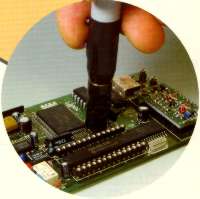 | ■特長 ●洗浄ブラシ内部から洗浄液がボタン操作により任意に供給されます。 ●洗浄箇所をブラッシングしながら、洗浄液共々、フラックスや残かすはバキュームビンに収容されます。 ●清拭用の布片や、ペーパー等の消耗品は必要なく、資源を節約し、環境にも優しく経済的です。 ●リワークしたコネクターのピン間や狭い箇所の清拭など、通常布片などでは作業しにくい所もすっきり洗浄できます。 |