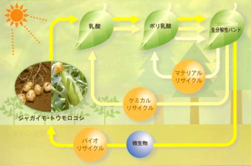 参考品です 地球環境に優しい植物性原料を使用したグリーンプラマーク取得の梱包用結束バンド 独自の巻き崩れ・巻き緩み防止処理で紙管なしを実現 ●生分解性をもった環境に優しいバンドです。 ●非石油系の植物性原料(ポリ乳酸樹脂)を使用したバンドです。 ●最終的には水と二酸化炭素に分解します。 ●使用後には約1〜数ヶ月程度でコンポスト化処理可能です。 ●一般のPPバンドと同様、梱包機に使用出来ます。 ●燃焼カロリーはPPの約半分(紙と同レベル)です。 ●燃焼しても有害ガスは発生しません。 *ご使用後、紙管が残らないので廃棄に困りません。バンドを最後まで使用出来るためムダがありません。 |