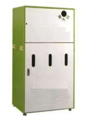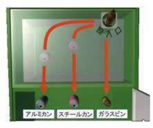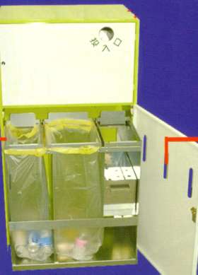 電気を使用せず、ひとつの投入口から入った資源ごみを、自動的にアルミ缶はアルミ缶の収納袋に、スチール缶はスチール缶の収納袋に、ビンはビンの収納袋にと、それぞれの違いを判断し、分別します。 2000年4月1日より、「包装リサイクル法」が実施され、資源の再利用に対しての、企業としての責任も重くなりました。 ※20台から受注です |