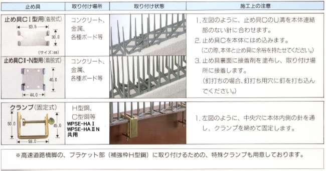 ハト防止柵 品番 WPSE-HAT WPSE-HAUN 価格は下の表をご覧下さい |