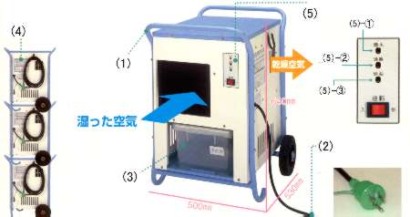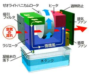 低温時でも強力除湿! 静音、軽量、コンパクト デジカント方式(下記参照)採用 マンション建設等の現場に! |
