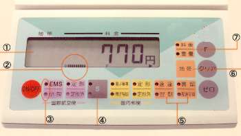 ■特長 ①大型液晶の採用で見やすさバツグンです。 ②「バーグラフ表示」で、同一料金内の重量範囲が一目でわかります。 ③キーランプの点灯で選択項目が一目瞭然です。 ④カウント機能やその他の郵便種類を選択できます。 ⑤各種の特殊扱いも標準装備してます。 ⑥あて先や地帯を選べます。 ⑦料金と重量の表示も簡単に切り替えられます。 ![]() ■仕様