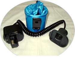 ■オプション ●バッテリーコード 軽量化の一環としまして、バッテリーを本体より分離させ、約500gの軽量化を可能にしました。カールコードを採用し、伸縮自在になりました。 野菜ケースの蓋打ち等にかなりの省力化が期待出来ます。 ケースの蓋を一度に多くするようにしまして、作業を行う時のみバッテリーを腰に付けたケースに入れ蓋打ちを行います。蓋打ちが一段落しましたらバッテリーを腰のバックより取り出し、本体の横に置いて下さい。 ![]() ●専用レインカバー 雨天時に使用される場合は小雨ならば、本体に専用のレインカバーをかぶせ、ケースの中に常にバッテリーを入れておき、口を締めておいて使用して下さい。 ![]()