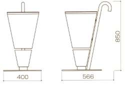 | *注意事項 @本製品は雨傘の除水専用の機器です。ほかの目的では使用しないでください。 (灰皿やゴミ箱と混同しないよう設置ください。) A除水の効果につきましては、傘の構造・材質によって異なります。 また、一部の折り畳み傘はご使用になれない場合がございます。 B除水の効果維持の為に、取扱説明書に従ったメンテナンスを行ってください。 C本製品は防錆処理を施しておりますが、直接雨水などのかかる場所へは設置しないでください。 |
