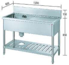 ステンレス水切台一槽シンク (ホース1本付)バックガード 品番 WPTS1SL-120 価格は下記をご覧ください。 |