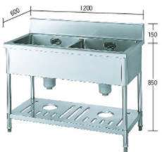 均等荷重120kg 槽深280 二槽・ホース一本・バックガード付 バックガード寸法 高さ150×厚さ60o ●耐食性・耐震性・成型性に優れたステンレス鋼SUS304材を標準使用。 ●鉄とクロームニッケルの合金。鉄に比べて錆びにくく、加工がしやすい。 |