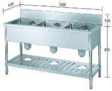 | ステンレス三槽シンク(ホース3本付)バックガード付 /品番 WPTS3Sシリーズ |