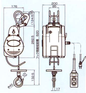 ●超軽量小型ながら、定格荷重は最大60kgのパワフル&高速巻上げ ●AC100V。手軽に使え、取扱いも楽々 ●荷の巻上げ過ぎを防ぐ 《過巻防止機能(リミットスイッチ)》付 ●ロープの長さが足りなかった時など、巻き下げ中の荷の巻上げを防ぐ《逆巻防止機能(リミットスイッチ式)》付 ●確実に停止、保持する《2重ブレーキ(メカニカルブレーキと発電制動)》 ●上部フックは《外れ止め》付の足場パイプ用も装備可能 ●揚程はWPVX602=20m・WPVX603=30m、操作コードは10m ●足場用軽量小型ジブクレーンも用意 |