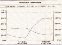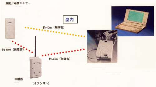 | ■特長 本システムは温度・湿度センサーからの測定信号を無線でPCインターフェースに送信し専用ソフトがインストールされたパソコンに接続しデータの解析を行い、画面上にグラフや表が表示されます。 また、Excelにデータを移し日表、週表、月表を作成しプリントアウトもできます。尚、PCインターフェースは常時パソコンに接続していなくてもデータは蓄積されています。(32kb) データを吸い上げる時は接続して下さい。 ![]() ■記録間隔と(分)と期間(日)
