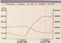 | ■特長 本システムは防水構造の温度センサーにより水温及び地温の測定信号を無線でPCインターフェースに送信し専用ソフトがインストールされたパソコンに接続しデータの解析を行い、画面上にグラフや表が表示されます。 また、Excelにデータを移し日表、週表、月表を作成しプリントアウトもできます。尚、PCインターフェースは常時パソコンに接続していなくてもデータは蓄積されています(32kb)。データを吸い上げる時は接続して下さい。 ![]()