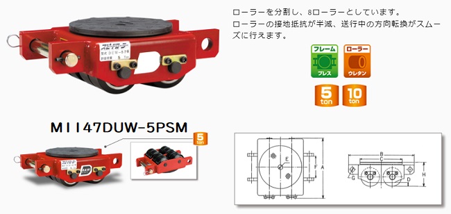 重量物運搬コロローラ低床タイプ(プレスフレーム)ダブル型4ローラー) 品番 M1147UW-1PM 価格は下記をご覧ください |