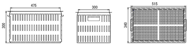| 高い通気性と耐久性を両立したステンレスコンテナ 外寸法 幅 515mm×奥行 340mm×高さ 300mm ![]() ■底面各部分に通気穴 ![]() ■本体と一体の持ちやすい取っ手 ![]() ■積み重ねできます。 ![]() ■野菜の保管・運搬・洗浄などにも最適です。 軽トラックの荷台に4台並べて積めます。 ![]() ■底面に設けた段差部分が、下になるコンテナの上部に点でなく、辺でフィットするので、積みかさねた際の安定度が向上しています。 ![]() ■側面と底面の通気穴による高い通気性 丸穴タイプ/角穴タイプ コンテナ側面と底面に配置された多数の穴による高い通気性で、濡れた野菜等の運搬や一時保管に最適です。ご使用目的に合わせて通気穴配置の異なる3タイプをご用意しました。 ![]() ![]() ■仕様寸法図 ![]() ■タイプ