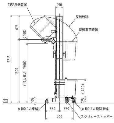 材料反転投入リフター80kg投入高さ1500mm(ポリ容器) 品番 M131PS80KG-1500STK |