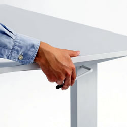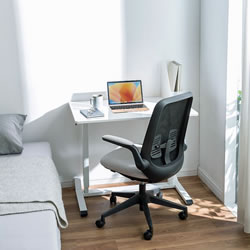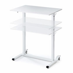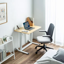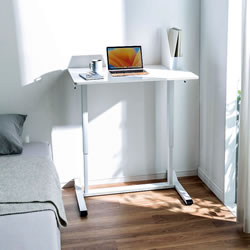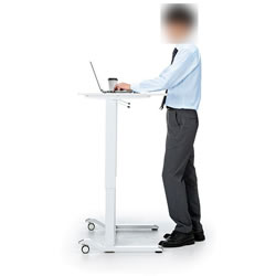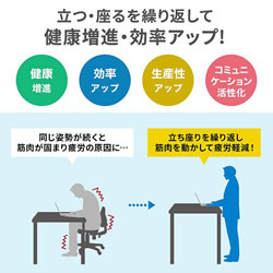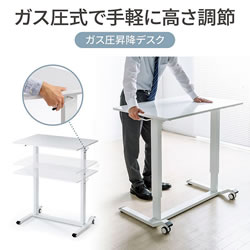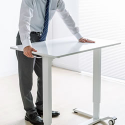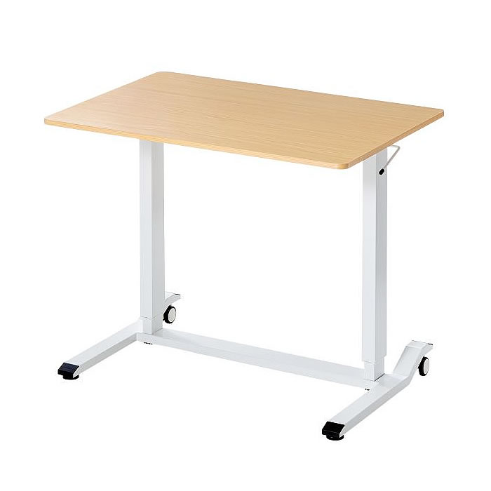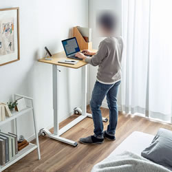 | ガス圧式で手軽に高さ調節ができる昇降デスク。 ホワイト天板/幅900×奥行き600mm。(M1375RD-G9060WS) 薄い木目天板/幅900×奥行き600mm。(M1375RD-G9060LMS) ホワイト天板/幅1200×奥行き600mm。(M1375RD-G12060WS) 薄い木目天板/幅1200×奥行き600mm。(M1375RD-G12060LMS) キャスター付き/アジャスター付き/ノックダウン組立式/大物製品 ![]() ■特長 ●ガスシリンダーを両脚に内蔵させた上下昇降デスクです。 ●昇降範囲は高さ683~1070mmです。 ●天板は北欧風の木目天板を採用しています。 ●脚フレーム後方はキャスター仕様になっているので、天板の手前を少し持ち上げると簡単な移動ができます。 ●脚フレーム前方はアジャスターを装着しています。 床面からの高さも低くしているので、キャビネットやワゴンなどをフレームをまたいで設置することができます。 ●使用する人の最適な高さに素早く変更することができます。 ●レバーは左右のどちらかを引くと昇降します。 (降ろすときは引いたレバーの反対側の天板を押すようにして下げます) ●作業台として使用することもできます。 ≪注意事項≫ ※天板を上下させる際に天板上には耐荷重を超える荷重を掛けないでください。 天板が急降下しけがや製品破損の原因となります。 ※天板を下げる際は、レバーを引く手と反対側の手を天板上部から下方へ押し込むとスムーズに行うことができます。 ![]() ■天板:ホワイト/木目タイプ ![]() ![]() ■横幅 横幅:90cmタイプ 横幅:120cmタイプ ![]() ![]() ■ガス圧式で手軽にデスクの高さ調節 ガスシリンダーを両脚に内蔵、手軽に高さ調節ができる昇降デスクです。 ![]() ■高さ683~1070mmで高さ調節 昇降範囲は高さ683~1070mmで、使用する人の最適な高さに素早く変更することができます。 ![]() ■健康増進と効率アップに 昇降デスクを使って立ったり座ったりして体を動かすことで、血流・代謝の改善、集中力の向上、コミュニケーションの活性化などが期待できます。 ![]() ■レバーを引いて昇降 左右どちらかのレバーを引くと高さ調節ができます。 ![]() ■降ろすときも押すだけで簡単 降ろすときは、引いたレバーの反対側の天板を押すようにして下げます。 ![]() ■ノートパソコンが快適に作業できる横幅90cmタイプ 横幅は、ノートパソコンやiPadを使って快適に作業ができる90cmです。 ![]() ■デスクトップパソコンに最適な横幅120cmタイプ デスクトップパソコンやデュアルディスプレイも快適に作業ができる、横幅120cmタイプです。 ![]() ■クランプ取り付けに対応 天板はクランプ取り付けに対応しており、モニターアームなどを使用できます。 ![]() ■スムーズに移動できるキャスター付き 後方の脚フレームはキャスター仕様になっているので、天板の手前を少し持ち上げると簡単に移動ができます。 ![]() ■使用例 ![]() ![]() ![]() ![]() ■タイプ