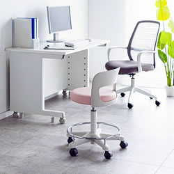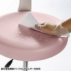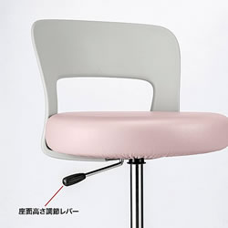 | ■特長 ●ワークスペースを選ばないスタイリッシュなスツール。5本脚キャスタータイプ。 ![]() ●直径385mmの大型座面です。 ![]() ●モールドウレタンを使用していますので、長期間使用できます。 ![]() ●ビニールレザーで水をこぼしてもさっとふき取れます。 ●医療分野で求められる耐次亜塩素酸ナトリウム対応レザーを採用しています。 ![]() ●低ホルムアルデヒド仕様です。 ●丈夫なスチール製脚を採用しています。 ●ガス圧高さ調節リフトによりレバー一本で座面の高さ調節が可能です。 ![]() ●6色から選択が可能です。 ![]() ■使用例 ![]() ■寸法図 ![]() ■共通仕様