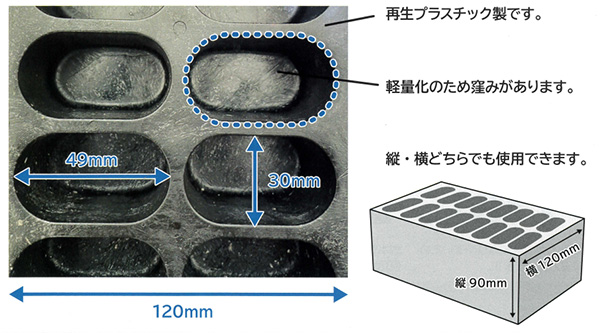 | 軽くて安全なプラスチック角材 ・1本10kgと軽量 ・お手頃価格でご提供 ・エコな再生プラスチック材 ・CO2排出削減に繋がる サイズ120×90×2280mm ![]() ■特徴 ●軽い 1本10kgと軽く持ち運びやすいため、作業が省力化できます。 ![]() ●腐らない 耐水性に優れ、室内・屋外の水場での使用が可能です。 ![]() ●加工しやすい 電動ノコギリで切断でぎるので、好みのサイズにカットでぎます。 ![]() ●木製りん木の代わりに。荷物の間に入れるなどのほが、トラックの積み込みの際にも使えます。 ■図面 ![]() ■製品イメージ ![]() ■仕様