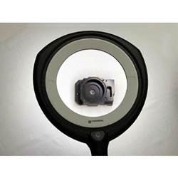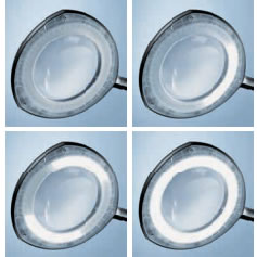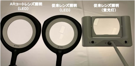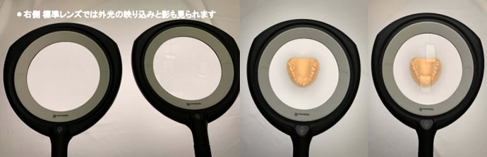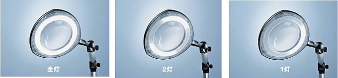 ■ARコートレンズは こんなにちがいます。 *一番左: ARコートレンズ 真ん中・一番右: 標準レンズ使用 ![]() ![]() ■影のマジックビジュアライザー もう一つの特徴にビジュアライザー(陰影機能)があります。 これはLED点灯箇所を全4灯→2灯→1灯と調整する事により影を付けワークを立体的に見せる機能で、ワーク表面のキズや加工模様、些細な色のチェックも可能であらゆるジャン ルに対応します。 ![]() ■リング型のLEDの点灯箇所を調整することにより、ワークの形状や検査したい内容に合わせて陰影を操作できるオプション機能です。 ●LED全点灯 光が均等に広がり広い面の色味や形状を確認することに適しています。 ![]() ●LED二ヶ所点灯 対象ワークに影が出来て、ワークの細かな凹凸も浮き出ています。 ![]() ●LED一ヶ所点灯 より陰影が濃くなりワーク底面のミーリング痕まで確りと確認できます。 細かな傷や凹み等の検査に適しています。 ![]() 目に優しいレンズ~球面収差を最小限に抑えたレンズ 長時間の検査でも目の負担を軽くし集中力を持続できるようにしました。 球面収差を最小限に抑えた特殊ガラスレンズを採用また、レンズの交換も簡単にできるようになりました ![]() ![]() ■好きな所に固定できるアーム構造 検査照明から始まったドイツのWaldmann社製 拡大レンズ付き照明 現場作業に基づき眩しくない・フレキシブル・目の疲れを緩和できるデザイン検査照明。 その理由は、多関節構造にて任意の位置にフレキシブルに動かせる事ができます。 長時間の作業者の目 ヨーロッパブランド時計・金属加工・エレクトロニクス・縫製・宝飾等あらゆるジャンルで使用されています。 ![]() ■寸法図 ![]() ■仕様