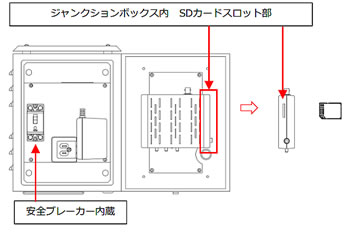 | 無線LAN・時刻補正用GPS 標準装備 カメラとレコーダーは一体型だから、設置条件が添架物1台に限定される現場に最適 ※電力柱など ![]() ■高機能 フルハイビジョンの鮮明な映像を記録できます。 最大256GBのSDカードに録画が可能です。 赤外線LEDを搭載し、夜間低照度時での撮影に最適です。 GPSによる時刻補正機能を装備し、長期間運用でも時刻ズレが発生しません。 内蔵の無線LANによるライブ・再生・データダウンロードにも対応します。 ![]() ![]() ■簡単便利 カメラとレコーダーが一体だから設置が簡単です。 バリフォーカルレンズを採用しており、任意の画角に調整可能です。 LED表示で録画状態を外部から確認できます。 施錠可能なボックスの開閉によりSDカードの取り出しも可能です。 ■こんな用途に カメラ部ハウジングIP67準拠・ボックス部IPX5準拠で屋外設置が可能です。 常時モニター監視が不要で不測の事態が起きた時などで映像確認する場合に最適です。 街頭・駐車場の防犯、不法投棄監視などに… ■録画日数目安 (単位:日)