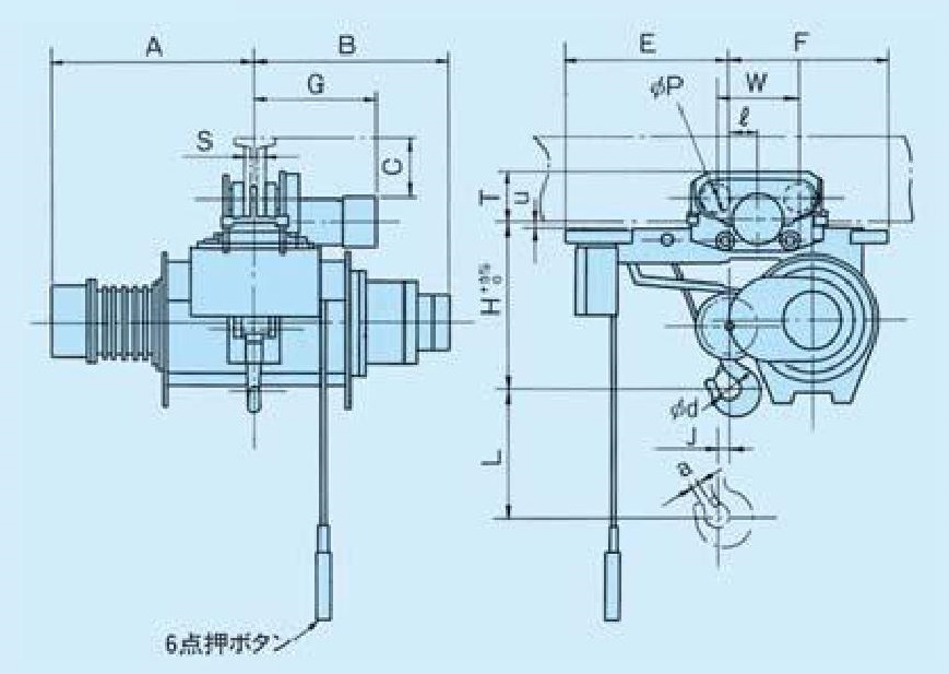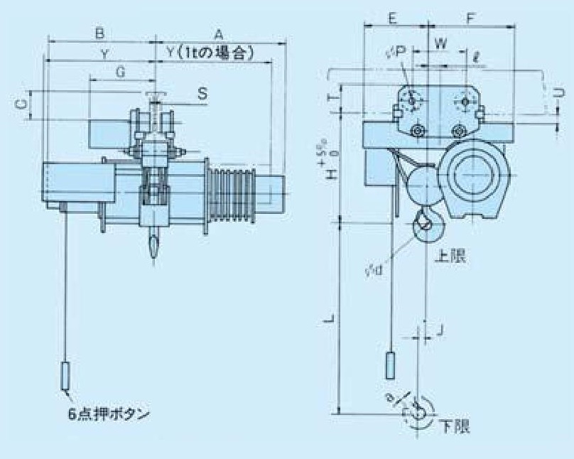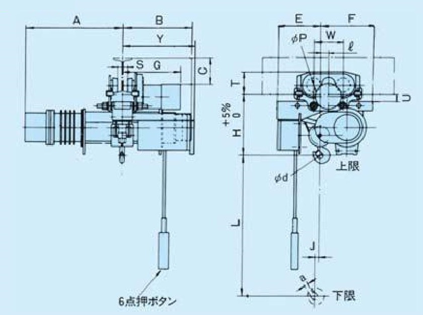 ローヘッド形電動トロリ付ホイスト0.5t揚程6m