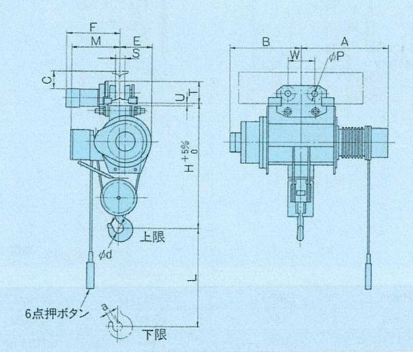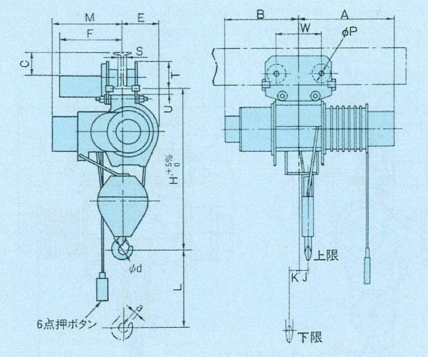 普通形電動トロリ付ホイスト(0.5t/揚程6m)