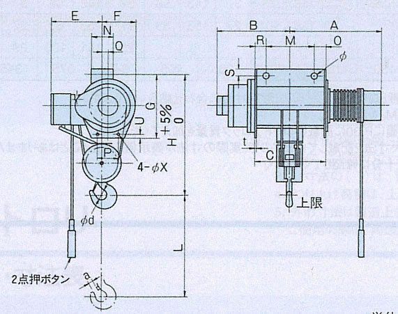 1.つり上げ荷重は上表の定格荷重にロードブック質量を加えてください。