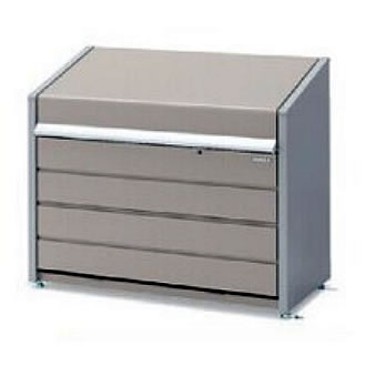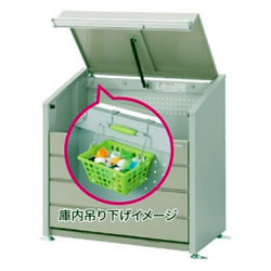 | 景観にマッチするデザイン。 低価格と多機能を実現 ![]() ■床は選べる2タイプ 今までにない「引き出せる床」の耐荷重は2000N/m2(200kgf/m2) ●メッシュ床タイプ:型番末尾 M 底面換気で臭いを軽減し、コストパフォーマンスにも優れています。 ![]() ●パネル床タイプ:型番末尾 P 底面を引き出して、丸洗いできるので清潔感がアップします。 ![]() ■カラー 画像と実物では色味が異なる場合があります。 また、実際の製品でも天候や光の当たり方により色調に違いを感じることがあります。 ![]() ■使いやすいハンドルとラッチ機能 清潔感のあるアルミ製のハンドルは、どの位置でも開けることができ、閉める時は自動的にラッチが掛かり強風により扉が開いてしまうことを防ぎます。 ![]() ■セキュリティ対策 不法投棄の防止、プライバシーの保護などにダイヤル錠が取り付けられます。 ダイヤル錠はツル径6mm以下の市販品をご使用下さい。 ![]() ■便利なフック付き(M1891BN-****タイプのみ) 付属のフック2個で庫内や後面に色々なモノを引っ掛けられます。 ![]() ■スムーズな開閉 ガススプリングを使用しているので軽い力でスムーズに開閉できます。