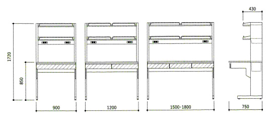 サイド実験用作業台(試薬棚付) 品番 M1997HS-S-900-BA 価格は下記をご覧ください |
