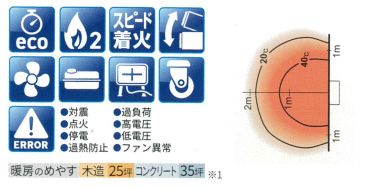 | ●熱出力 強19.4kw/弱15.1kw ●運転音(50/60Hz)64/64dB ![]() ■特長 ●ワンランク上のあたたかさ 熱出力20kW→体感24kW ●省スペース・コンパクト ●火力切替 強弱2段・新機能ecoタイマー運転付き ■ecoタイマー運転とは 設定から30分間は「強」運転となり、30分経過後に自動で「弱」運転に切り換わります。 無駄な燃料の消費と暖め過ぎを防ぐ、M19R-311Aに搭載された新機能です。 ■寸法図 ![]() ■仕様 ![]()